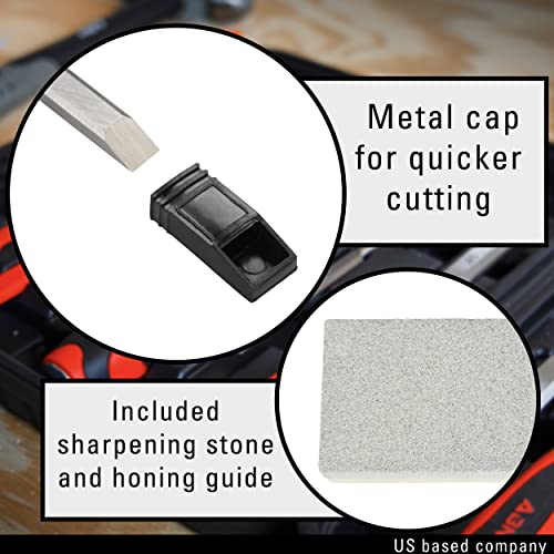 [Sharpen Your Tools]: Repeated use will slowly dull the chisel tip knife edges, so improve cutting power with the included sharpening stone and honing guide
