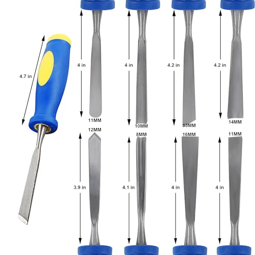 WOODWORKING TOOL KIT: Package includes 8 chisels, 2 rasps, 3 sharpening stones and 1 canvas bag. The blade dimensions vary between chisels in order to meet your different needs for woodworking (please refer to the dimension images for more details).