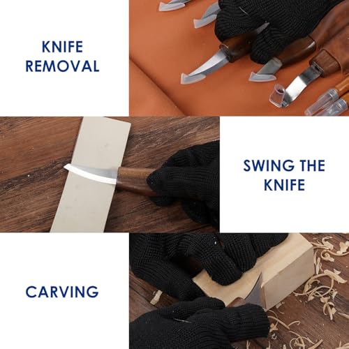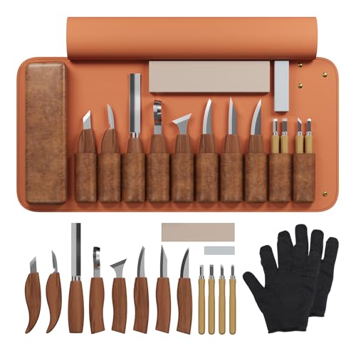 【16-Piece Wood Carving Kit】 This wood carving kit includes 8 wood carving knives, 4 detail carving tools, gloves, polishing compound, sharpening strop, and a leather roll. Ideal for beginners and experts, this whittling kit provides the perfect tools for precise wood carving, from simple projects to intricate designs.