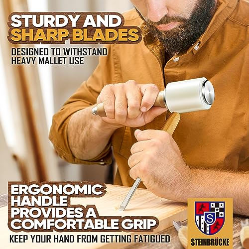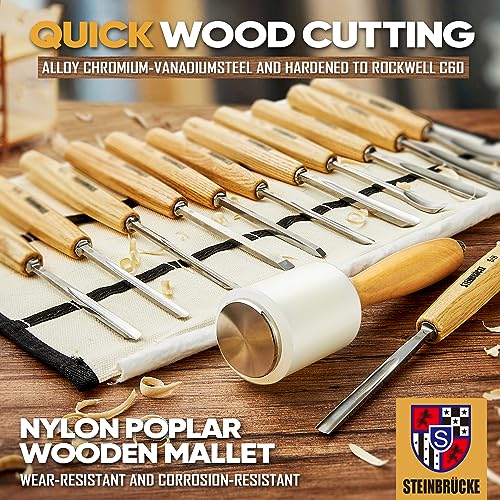 Wood Carving Kit, Wood Carving Tools Set of 12 Chisels and Wood Mallet with Canvas Case Gouges, Wood Whittling Kinves Kit, Wood Carving Knife Set, Woodworking Chisel Set for Beginners, Professionals