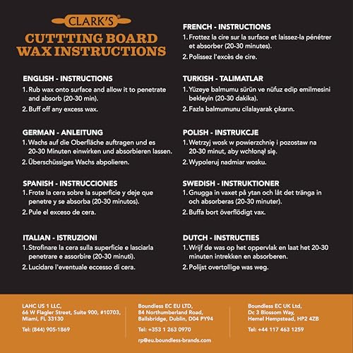 COMPLETE SET – CLARK’S oil and wax along with the popular applicator are designed to work seamlessly together. Finally, the complete solution for new or aged Cutting boards, Butcher blocks, Salad Bowls, Wood Utensils and Wood Countertops.