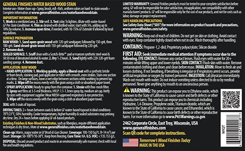 Indoor use only; Formulated to provide workability similar to oil based stains