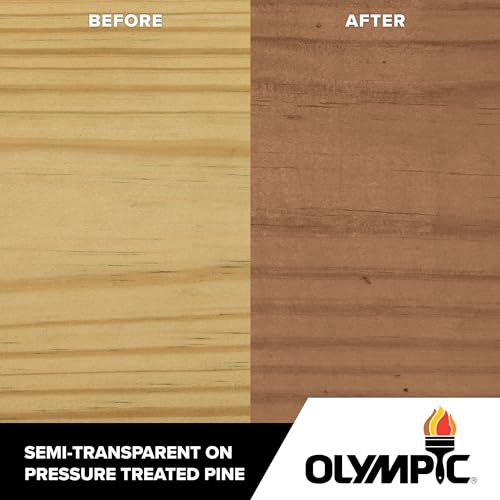 OLYMPIC® WATERGUARD® Semi-Transparent Wood Stain + Sealer provides waterproofing protection with subtle color that allows the natural grain and texture to show, enhancing the natural beauty of wood. Ready mixed color ready to go.