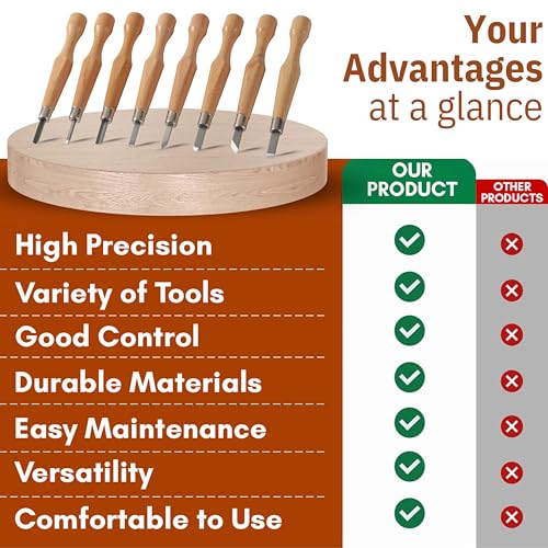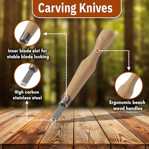 and intricate wooden artworks. They cater to beginners learning the basics of carving as well as